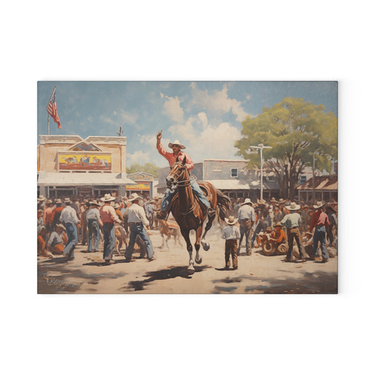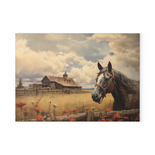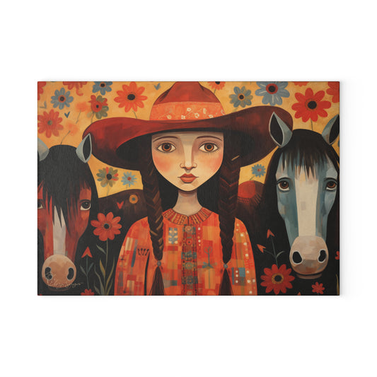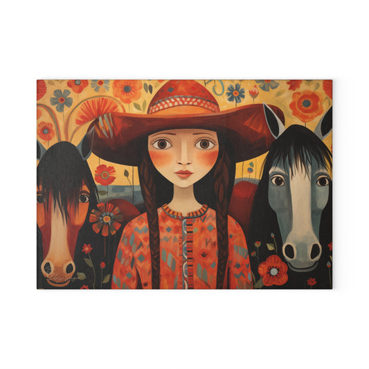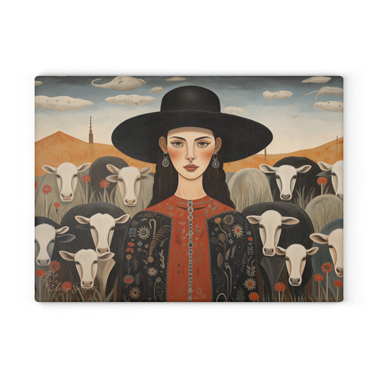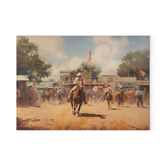 Explore our captivating collection of glass cutting boards, where vintage painted scenes, folk-style western designs, and rustic charm come together. Immerse yourself in the nostalgia of rodeo moments, cattle, and cowgirls, each piece telling a unique story inspired by the old west. Perfect for culinary enthusiasts and seasoned chefs alike, our cutting boards seamlessly blend modern practicality with timeless charm.