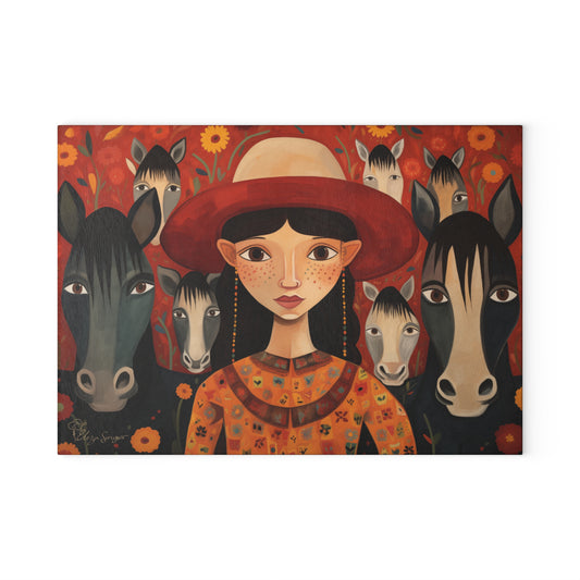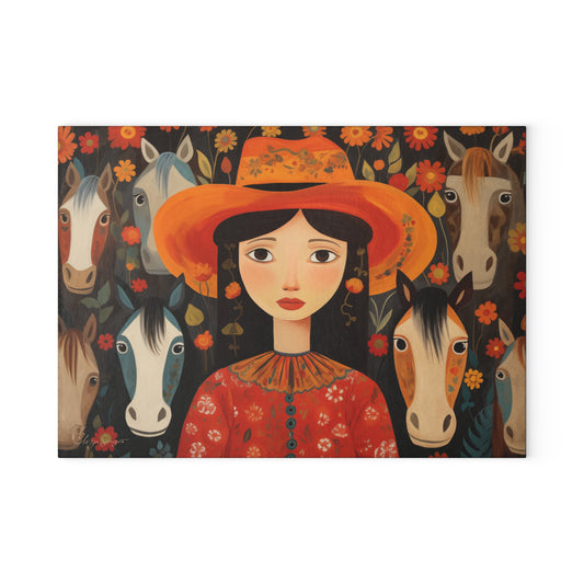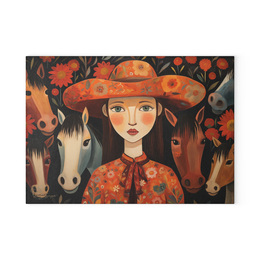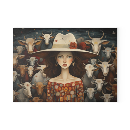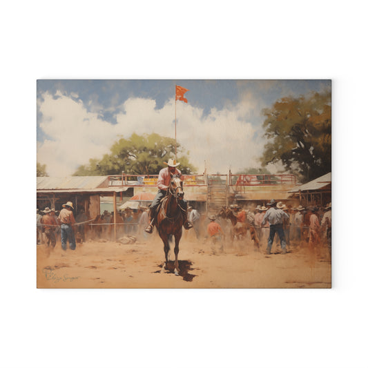 Explore our captivating collection of glass cutting boards, where vintage painted scenes, folk-style western designs, and rustic charm come together. Immerse yourself in the nostalgia of rodeo moments, cattle, and cowgirls, each piece telling a unique story inspired by the old west. Perfect for culinary enthusiasts and seasoned chefs alike, our cutting boards seamlessly blend modern practicality with timeless charm.